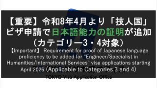 News & Updates2026-04-13【重要】令和8年4月より「技人国」ビザ申請で日本語能力の証明が追加(カテゴリー3・4対象)